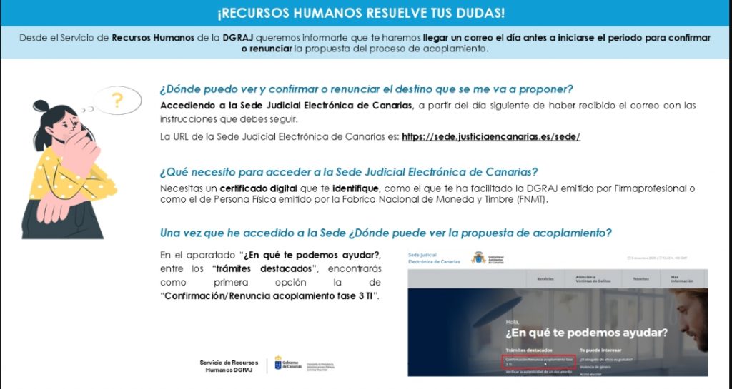 INFORMA CO.BAS – Publicado en la Intranet; Nota Informativa sobre los concursos específicos para diversos puesto de trabajo en Oficinas Judiciales de la Fase III, “Recursos Humanos resuelve tus dudas” (03/12/2025 dónde puedo confirmar, renunciar plaza).